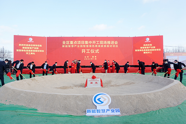 開局就是決戰(zhàn),起步就是沖刺。1月16日上午,煙臺市舉行2022年重點(diǎn)項(xiàng)目集中開工活動(dòng),在蓬萊區(qū)分會場,新能智慧產(chǎn)業(yè)園智慧綠色高端家具板材一期項(xiàng)目奠基開工。蓬萊區(qū)委書記林鈺濤、區(qū)長王長港及區(qū)委區(qū)政府其他領(lǐng)導(dǎo)班子成員出席活動(dòng)慶典,煙臺財(cái)金集團(tuán)總經(jīng)理李輝、煙臺新能智慧產(chǎn)業(yè)園董事長吳軍紀(jì)、總經(jīng)理高春光及產(chǎn)業(yè)園全體員工共同參加慶典并見證項(xiàng)目奠基開工。